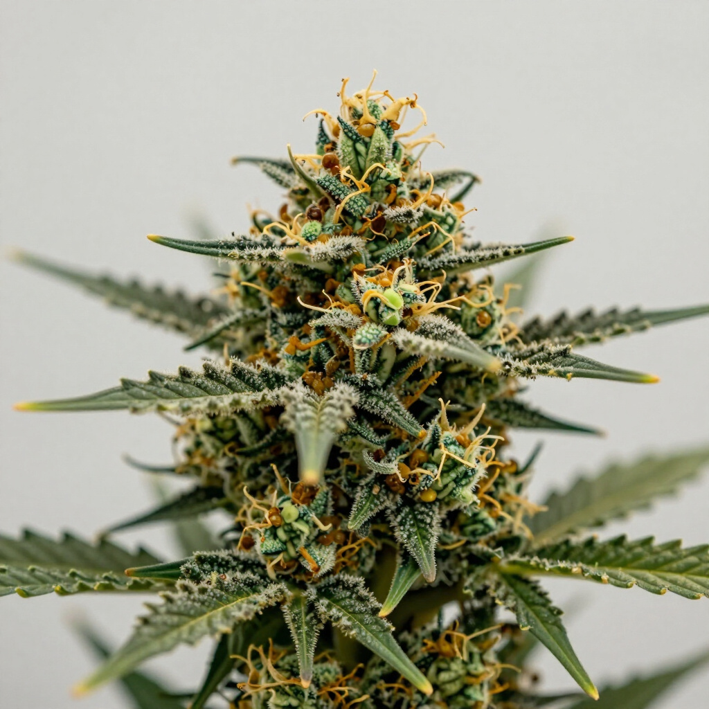 Technical showcase of bract structure and frost coverage. Ensuring consistent shelf appeal and product strength for wholesale distribution.